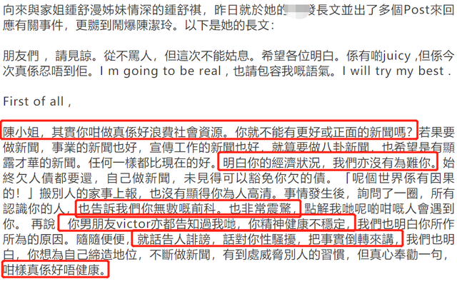 鍾舒漫 陳潔. 9 hours ago歌手鍾舒漫Sherman與前港姐陳潔玲去年涉生意糾紛Sherman入稟向對方追討4萬元期間2人不時在網上爆發罵戰事件擾攘一年今日在西九龍法院大樓的小額錢債審裁處就案件進行裁決Sherman於早上9時10分在男友林灝軒及胞妹鍾舒祺陪同下現身而陳潔玲與老公謝趠汎約7分鐘後到達最後Sherman. 9 hours ago其後鍾舒漫在6月9日提取了一箱消毒噴霧之後而陳潔玲當時男友Victor現任丈夫要求鍾舒漫先簽署一份協議書後先可以取貨但鍾舒漫拒絕簽署該份協議書由於雙方早已在2020年5月13日達拆夥協議因此陳潔玲不能夠將簽署協議書先決條件強加於鍾舒漫身上.