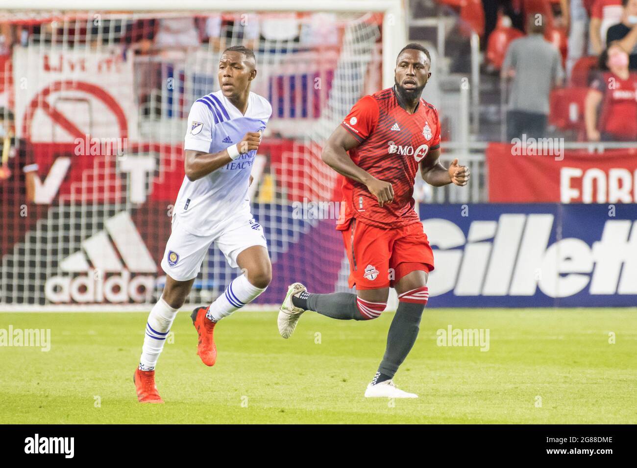 Toronto Canada 17th July 2021 Auro Da Cruz Jr 96 And Luis Carlos Almeida Da Cunha Also Known As Nani 17 In Action During The Mls Game Between Between Toronto Fc And