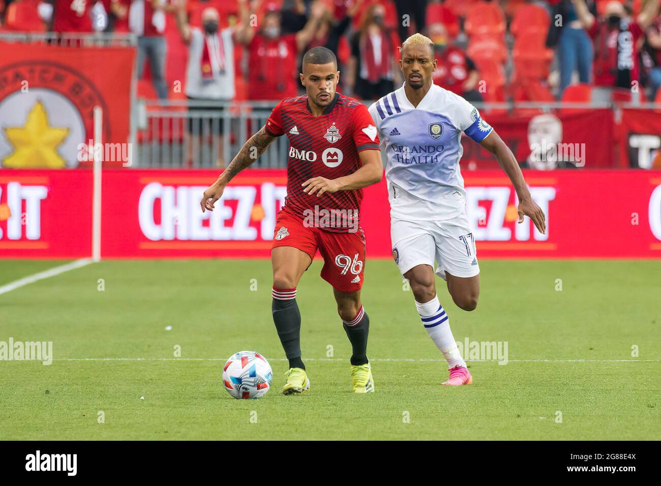 July 17 2021 Toronto On Canada Toronto Fc Midfielder Yeferson Soteldo 30 Is Defended By Orlando C