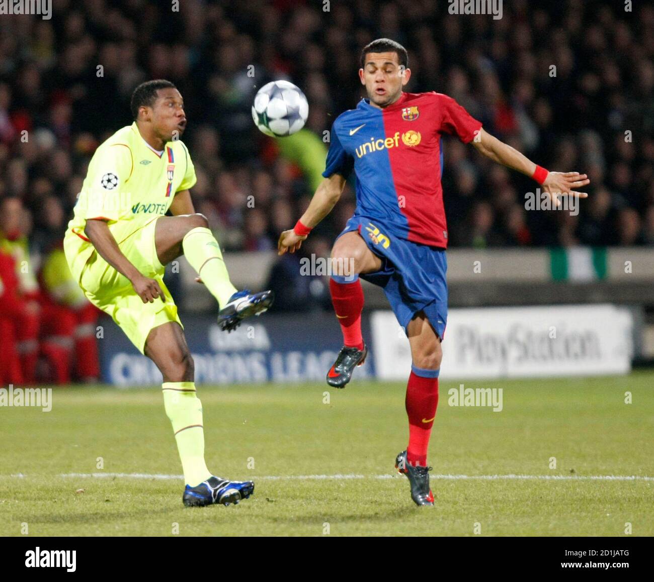 Kader Keita L De L Olympique Lyon Defie Daniel Alves De Barcelone Lors De Leur Match De Football De La Ligue Des Champions Au Stade Gerland A Lyon Le 24 Fevrier 2009 Reuters Robert